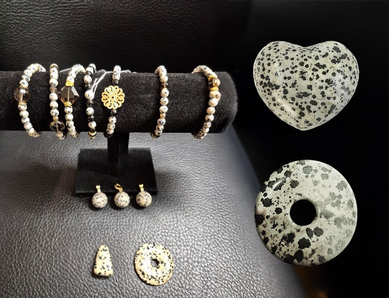Der Dalmatinerstein hat belebende und anregende Wirkung auf das Nervensystem, die Nerven werden gestärkt und der Informationsfluss wird erleichtert, hilfreich bei Entzündungen. Beschleunigt die Rekonvaleszenz und den Energieaufbau, verbessert den Schlaf. Zudem wirkt er gegen Kopfschmerzen und löst Verspannungen im Bewegungsapparat und im Verdauungstrakt. Lindert Schmerzen im Nacken und Rückenbereich.
